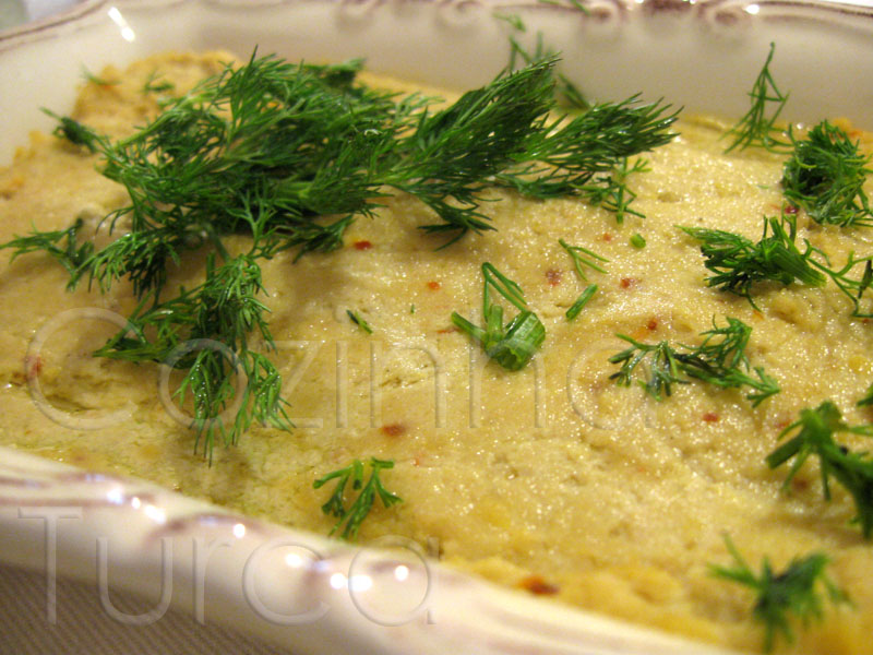 Coza o gão-de-bico e reduza-o a puré na picadora. Adicione o tahine, azeite, limão e alho finamente picado. Tempere com sal, cominhos e pimenta vermelha. Misture bem. Decore com endro picado.