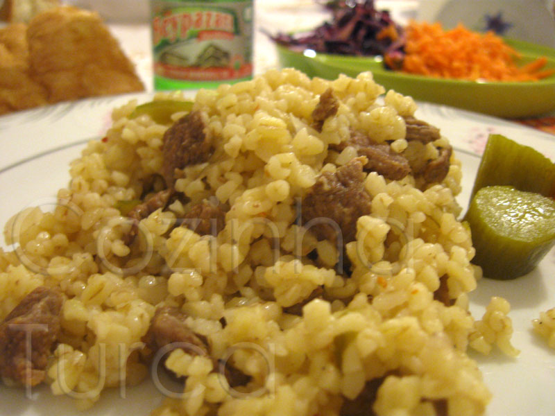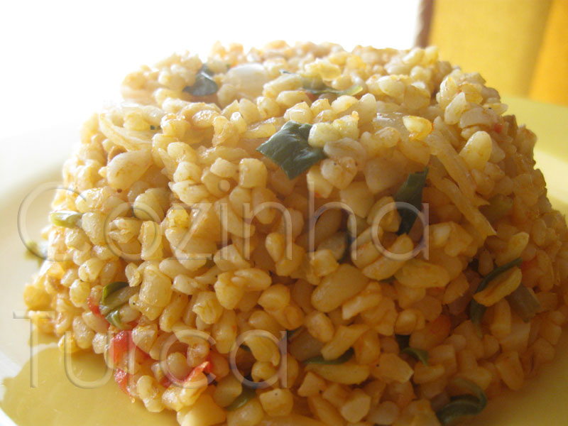 bulgur de grão fino * 1 copo de lentilhas vermelhas * 1 cebola * 1/2 copo de óleo de girassol * 1-2 colher(es) de sopa de pasta de tomate * 1 colher de sopa de cominhos * sumo de 1 limão * 1 colher de chá de sal * 1/2 copo de