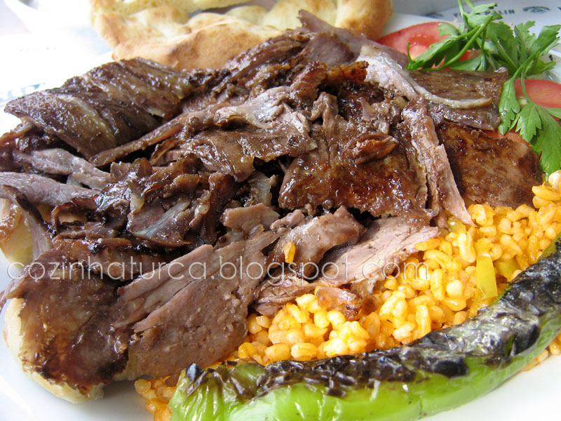 Trata-se de um prato turco famoso e muito apreciado. Consiste em fatias de carne muito fina cozinhada no espeto giratório (