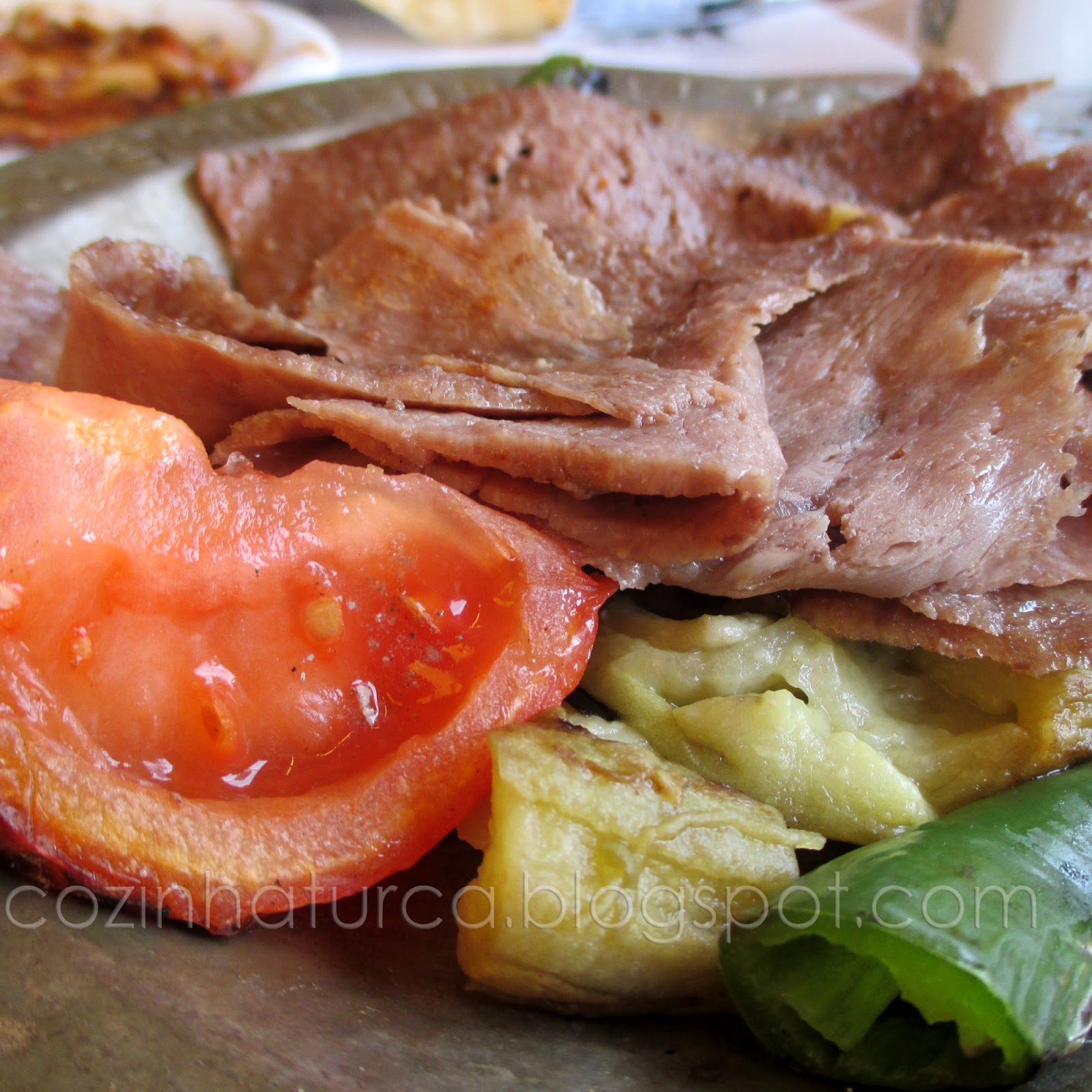 1 frango cortado * 2 cebolas médias * 4 dentes de alho * 4 batatas médias * 2 tomates * 3 pimentões verdes médios * 1/2 limão * 1 colher de café de açúcar * sal * pimenta preta
